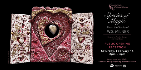 Species of Magic: From the Studio of W.S. Milner will be on view in the gallery February 14th through March 21st, 2026 with free public visiting hours Thursdays, Fridays, and Saturdays, from 10am to 5pm.